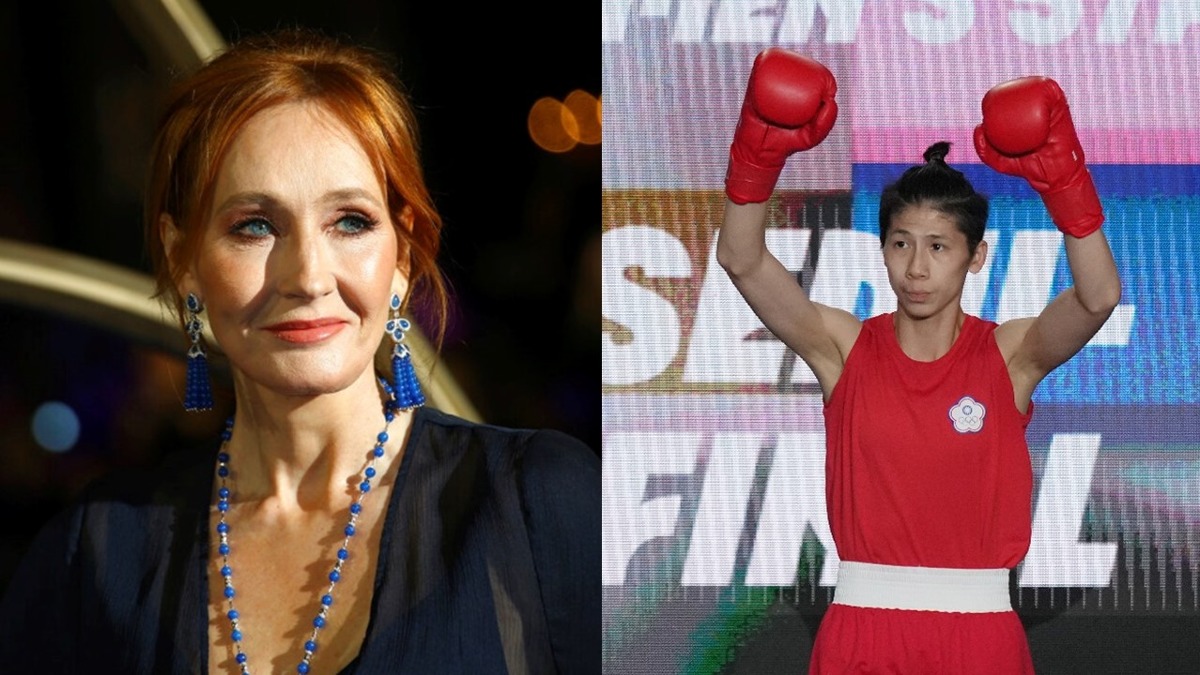 《哈利波特》作者J. K.羅琳(左)先前公開質疑林郁婷(右)的性別。(左圖/美聯社、右圖/中華奧會提供)