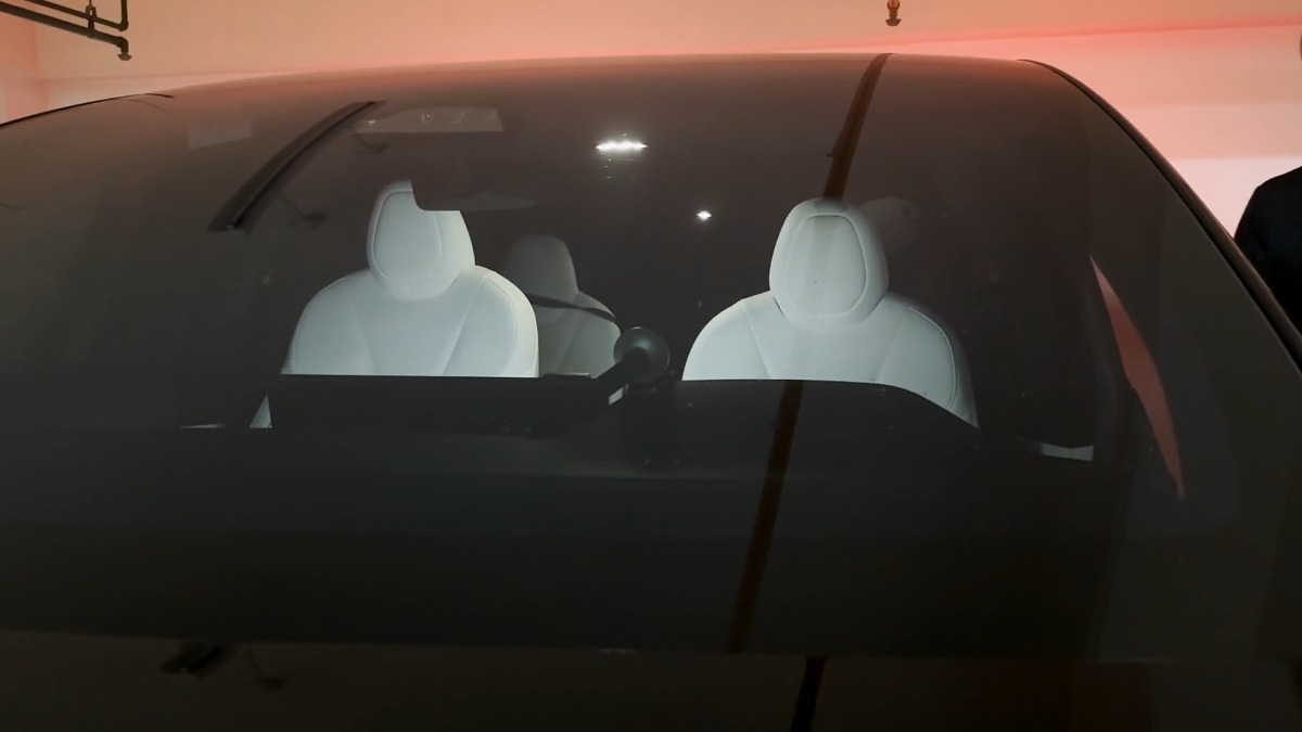 特斯拉車裡的座椅,竟然發出藍色的光,不仔細看,還以為是有人坐在車裡看你。(圖/東森新聞)