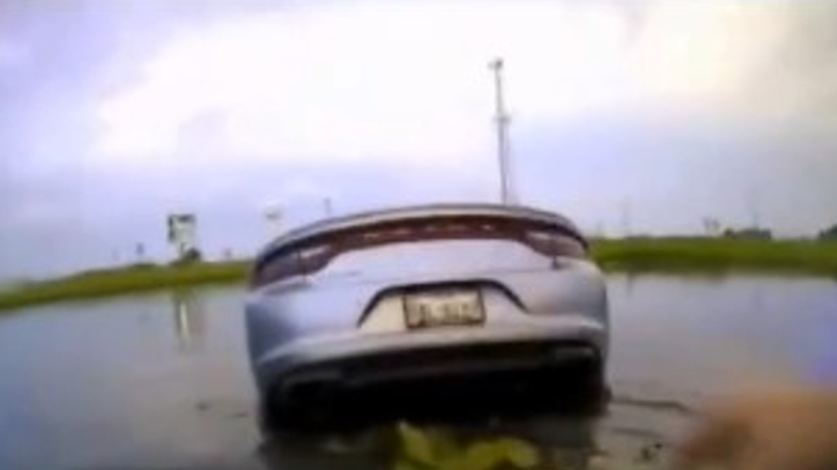 美國德州發生驚險的場面,一位巡警在路邊接到路邊民眾求救,發現一輛汽車衝進湖中,而且正在不斷下沉,當時還有一名女駕駛困在車內,警員立刻下水救援,身上的監視錄影機,錄下這樣驚心動魄的場面。