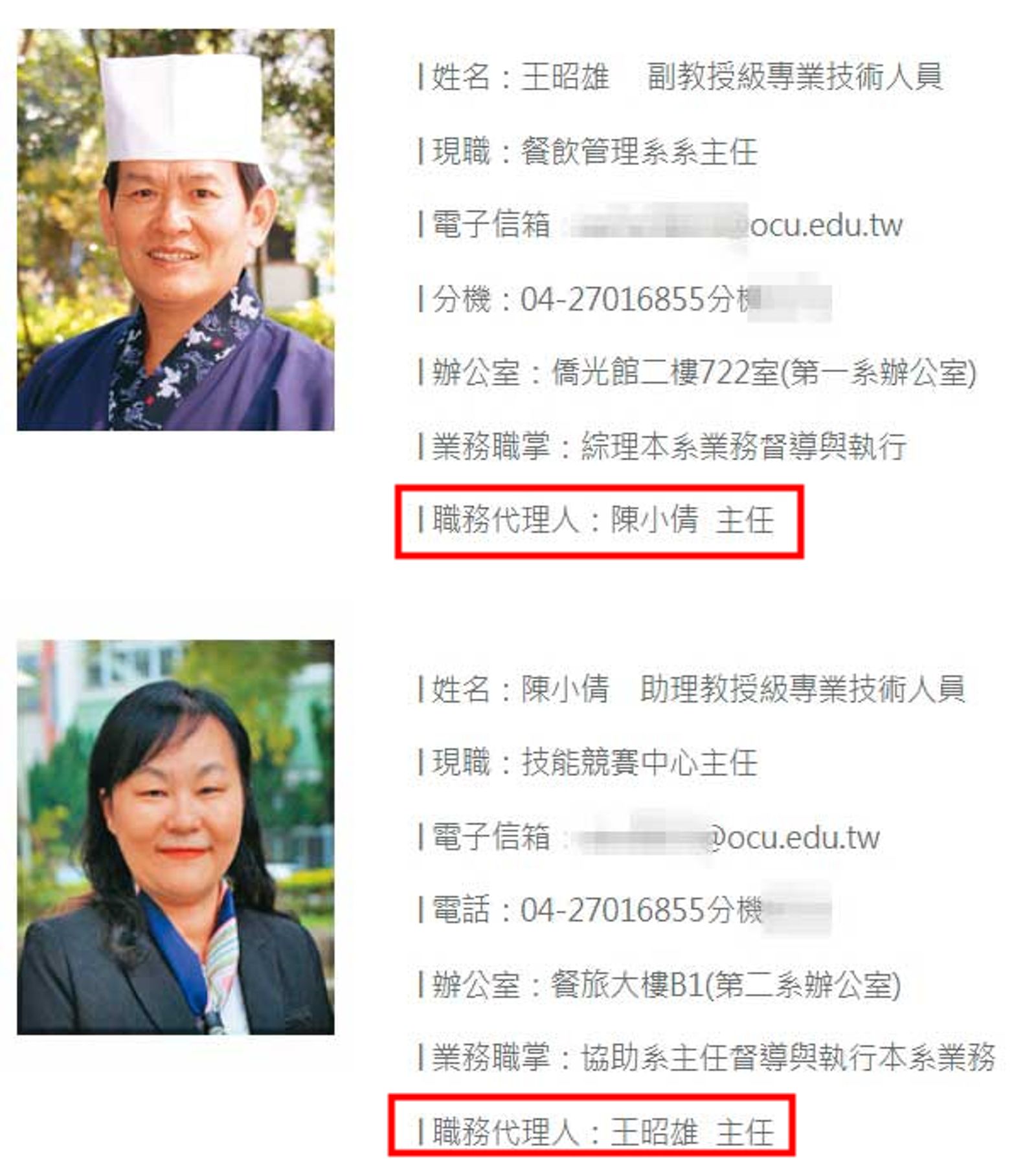 陳小倩後來升任技能競賽中心主任,卻仍與系主任丈夫王昭雄互代理職務。(圖/翻攝僑光科大官網/鏡週刊)