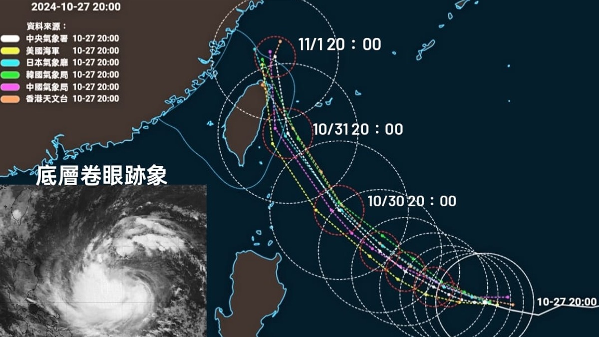 臉書粉專「觀氣象看天氣」指出,多數國家都認為康芮颱風約在11/1(五),有擦過或登陸東部、北部機會。(圖/翻攝自觀氣象看天氣)
