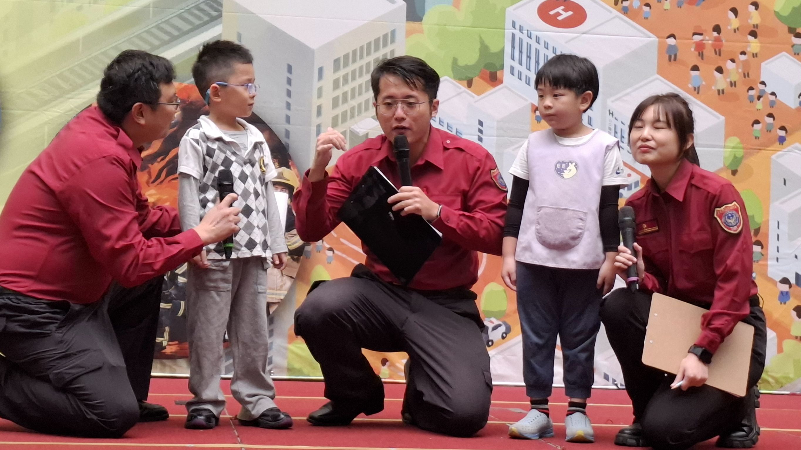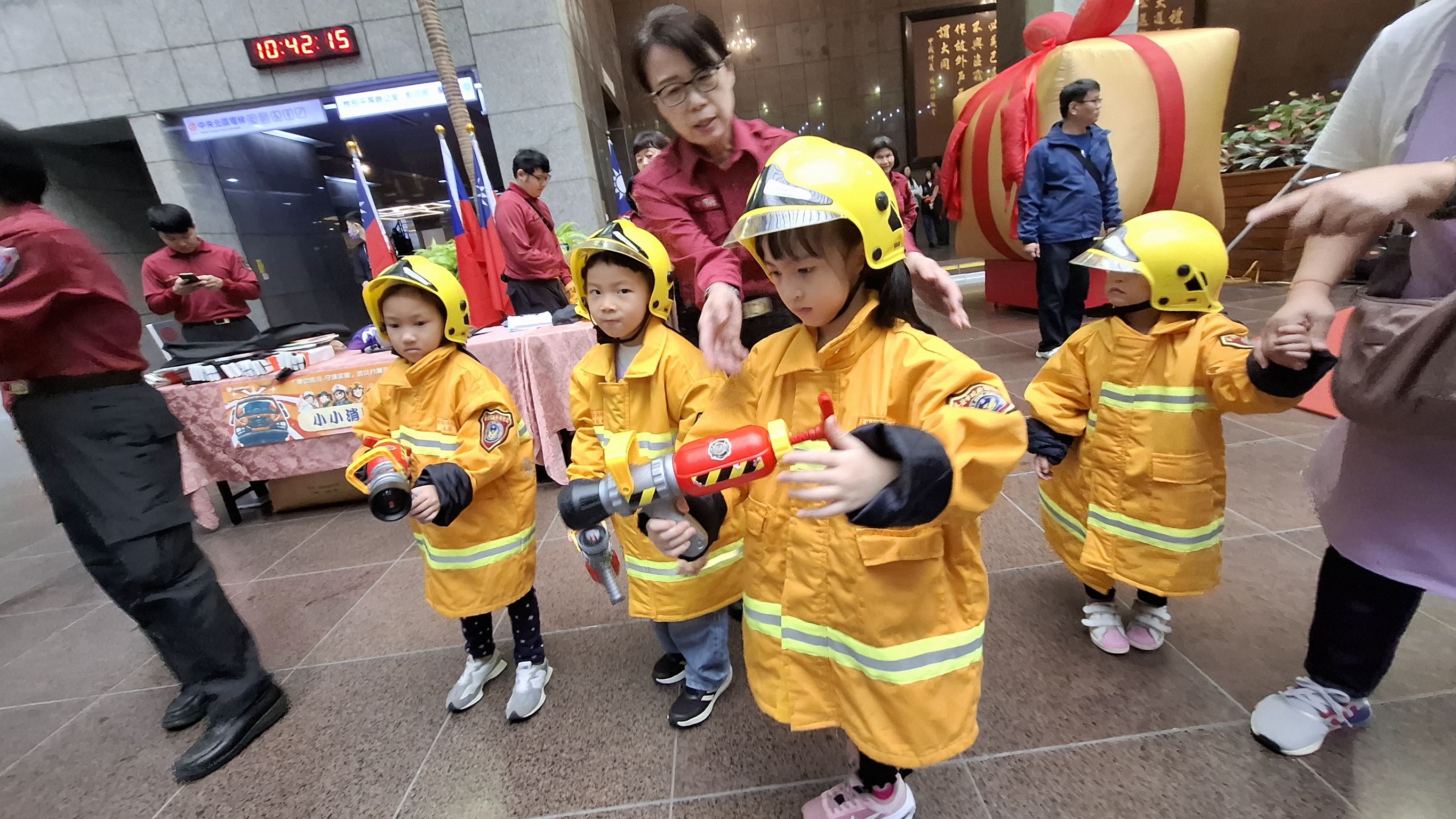 現場小朋友提驗小小消防員。(圖/記者李俊賢攝)