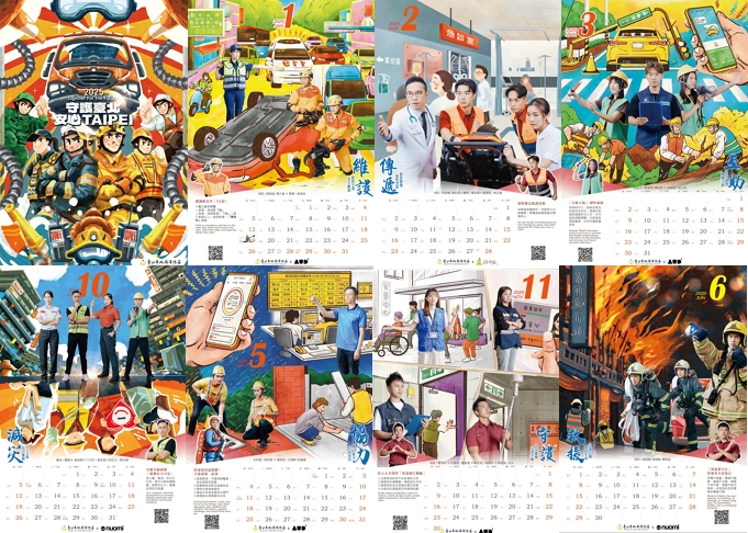 消防局指出,今年的防災月曆特別跨界合作,邀請知名插畫家施暖暖、陳于峰(諾米)以及林志恆(鬍子大叔),共同打造了一本充滿愛與守護的「守護臺北 安心TAIPEI Together for the Future」防災月曆。