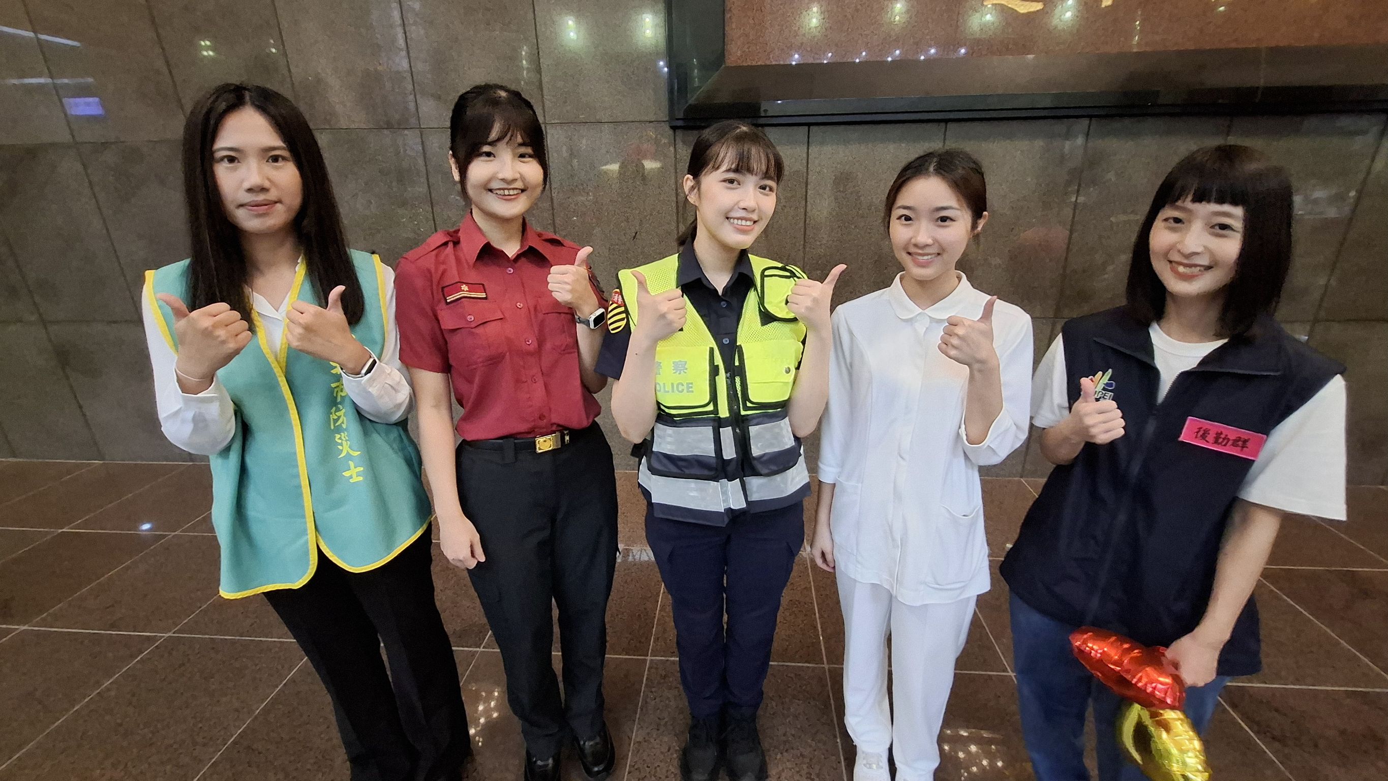 台北市政府今天發表「守護臺北 安心TAIPEI Together for the Future」防災月曆,這次防災月曆除了和插畫家合作,更找來包含警察、消防、醫護等第一線單位的英雄美女擔任各個月份的主角,其中任職北市交大的女警吳佳怡和台大醫院護理師的林芷璇,外型相當亮眼,吸引不少目光,此外活動現場也邀請小朋友們一起體驗小小消防員,活動現場相當熱鬧。