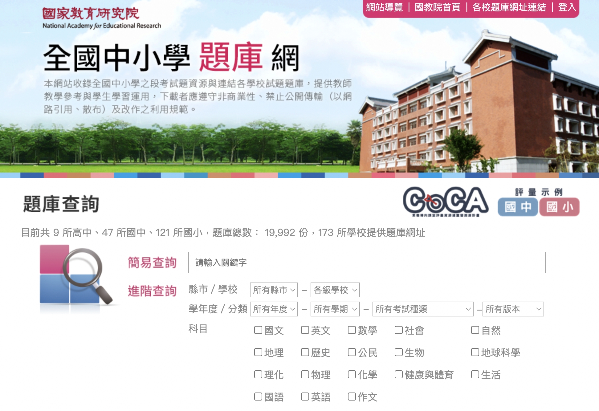 據了解,全國中小學題庫網於民國98年建置,成立初衷係希望在數位學習資源缺乏的狀況下,能建構一個分享學習資源的平臺,提供品質穩定的教育資源服務,讓各地學生可以參考其他學校試題做為練習之用;試卷資料蒐集過程中,各校相關人員費心協助進行整理與分類,以確保各項資源的正確性與完整性。