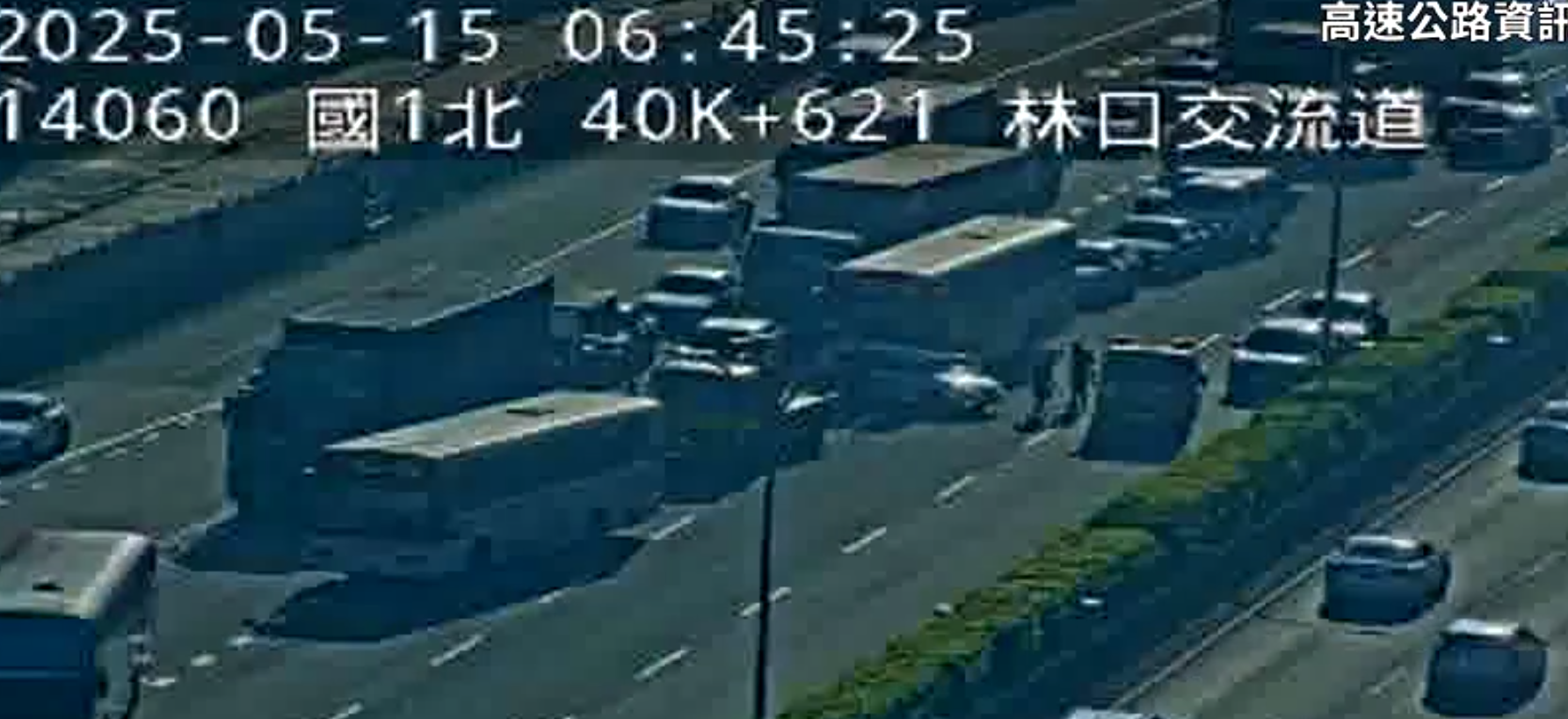 國道1號南向40.2公里處林口路段,今(15日)06:45發生多車連撞車禍,其中包含一輛客運,現場十分混亂造成嚴重回堵,目前還在排除當中。