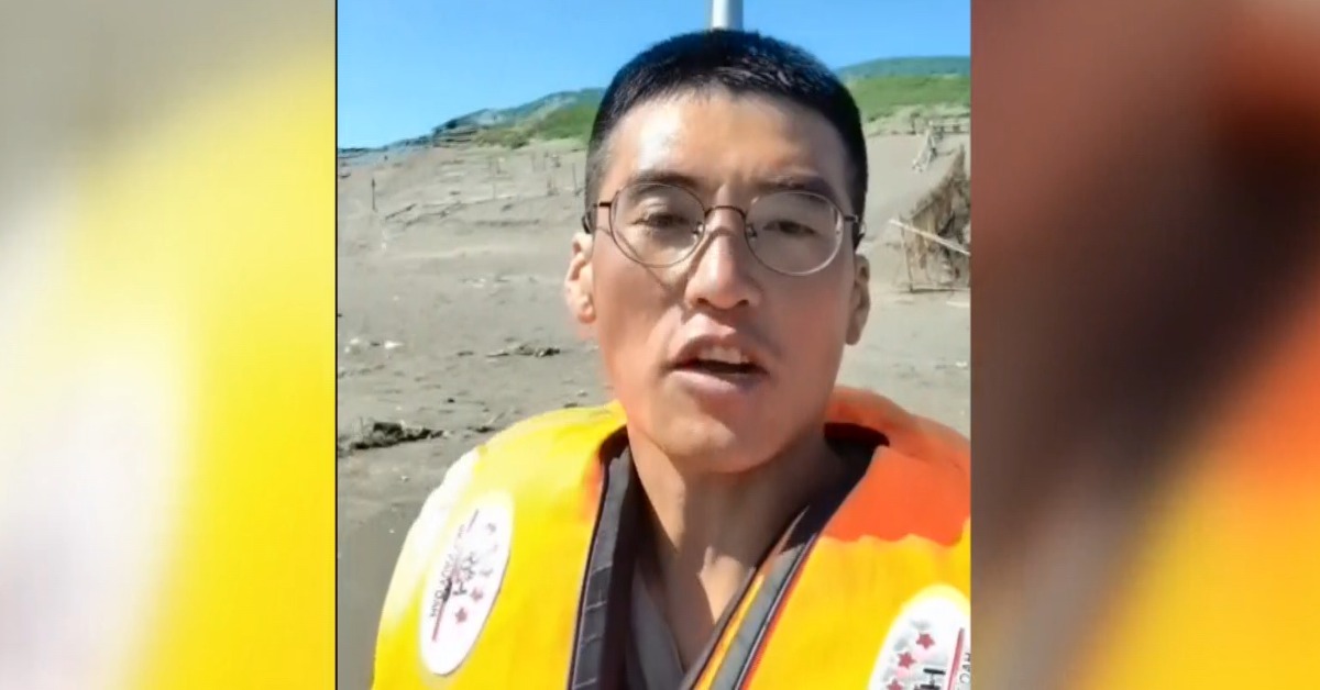 中國男子自稱山東凱哥,抖音上發出渡海影片,說自己15號從福州長樂機場海灘下海,乘著橡皮艇抵達桃園觀音海灘,還插上五星旗。海巡署透過科技鑑定,確認影片是在觀音海灘拍攝,實際走訪比對,場景相同,但凱哥影片疑點多。
