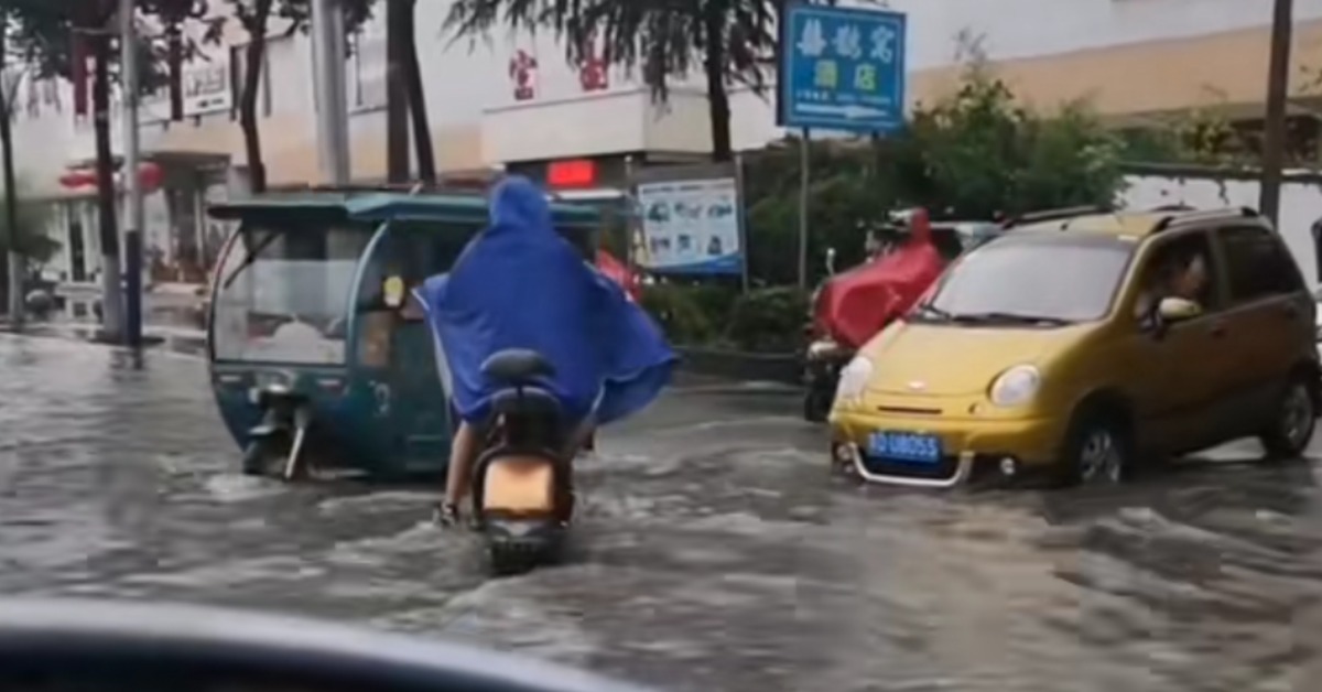大雨來得又急又猛,不少街道積水嚴重,行人涉水困難,有人甚至乾脆游泳過街。阜陽一名女子因看不清積水下路況,意外墜入人孔蓋,經及時搶救後脫險,但她驚魂未定仍站在原地不肯離去,焦急大喊:「你別走那邊了,我怕別人走,我在這站著等他們,叫他們不要從這走。」她的舉動不僅保護了他人,也反映出災難面前的人性光輝。