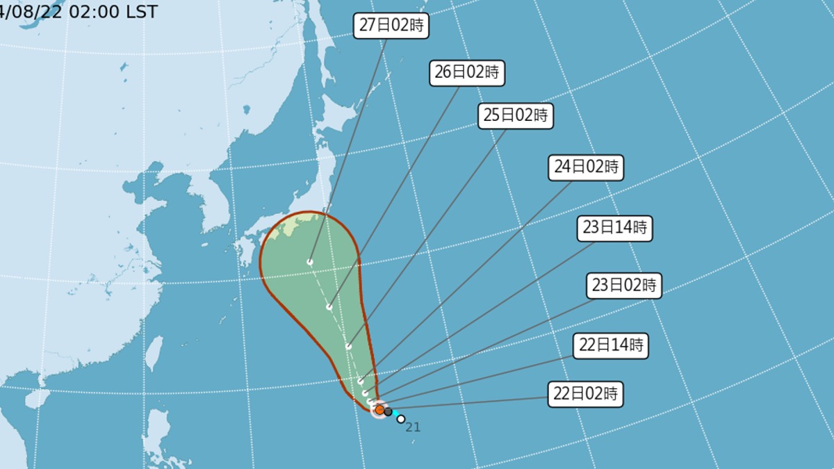 今年第10號颱風「珊珊」於今(22)日清晨2點生成,預估以北北西方向朝日本前進。(圖/氣象署)