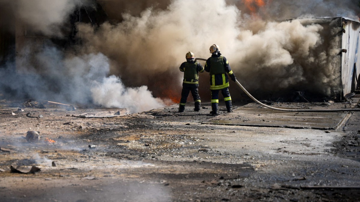 烏克蘭敖德薩地區遭到俄軍空襲,消防員在空襲過後滅火。(圖/路透社)
