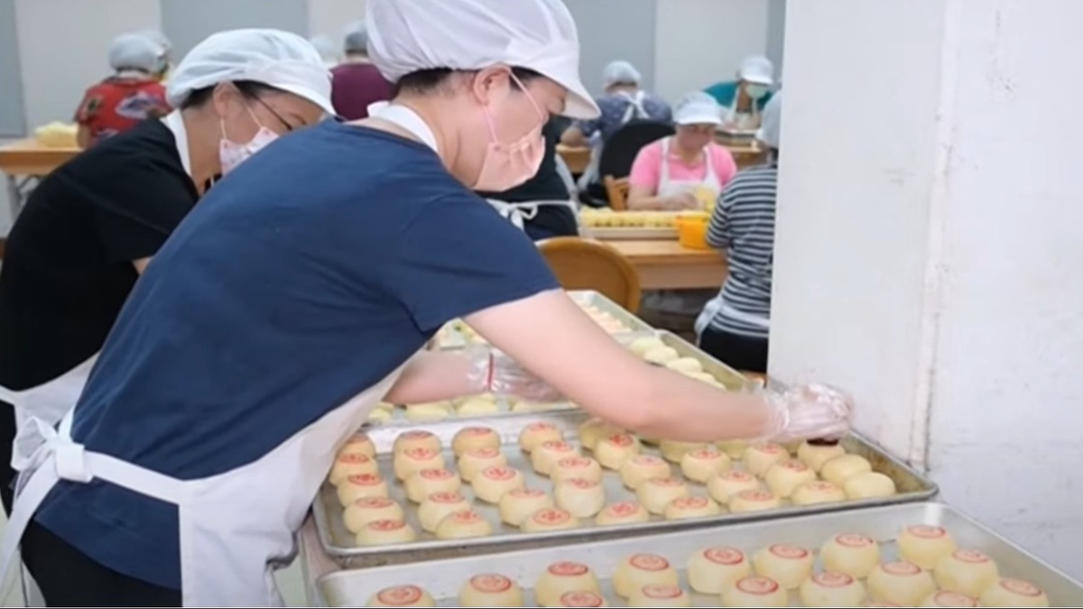 鋼鐵廠內的烘焙坊正在趕工製作月餅,包好內餡後蓋上logo,一顆顆白白胖胖的綠豆椪每年都熱銷,不過今年一盒10顆裝的,從去年430元漲到495元,平均一顆漲6.5元,雖然漲價了依舊熱銷,甚至因為只有員工可以買,市面上已經出現代購。