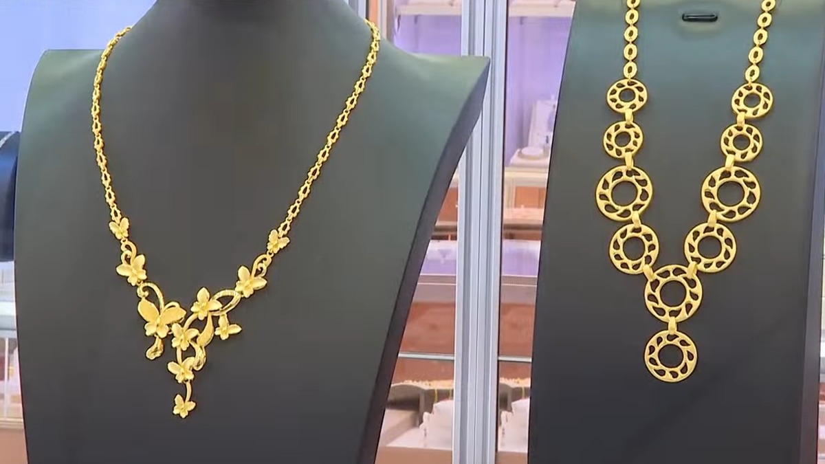 才開門做生意,客人就來問價格,因為金光閃閃的項鍊手鍊耳環又再漲,金價的變化到底有多大?像是去年要買這一套金飾,一兩多只要10萬出頭,但現在要買的話,至少要將近20萬元。
