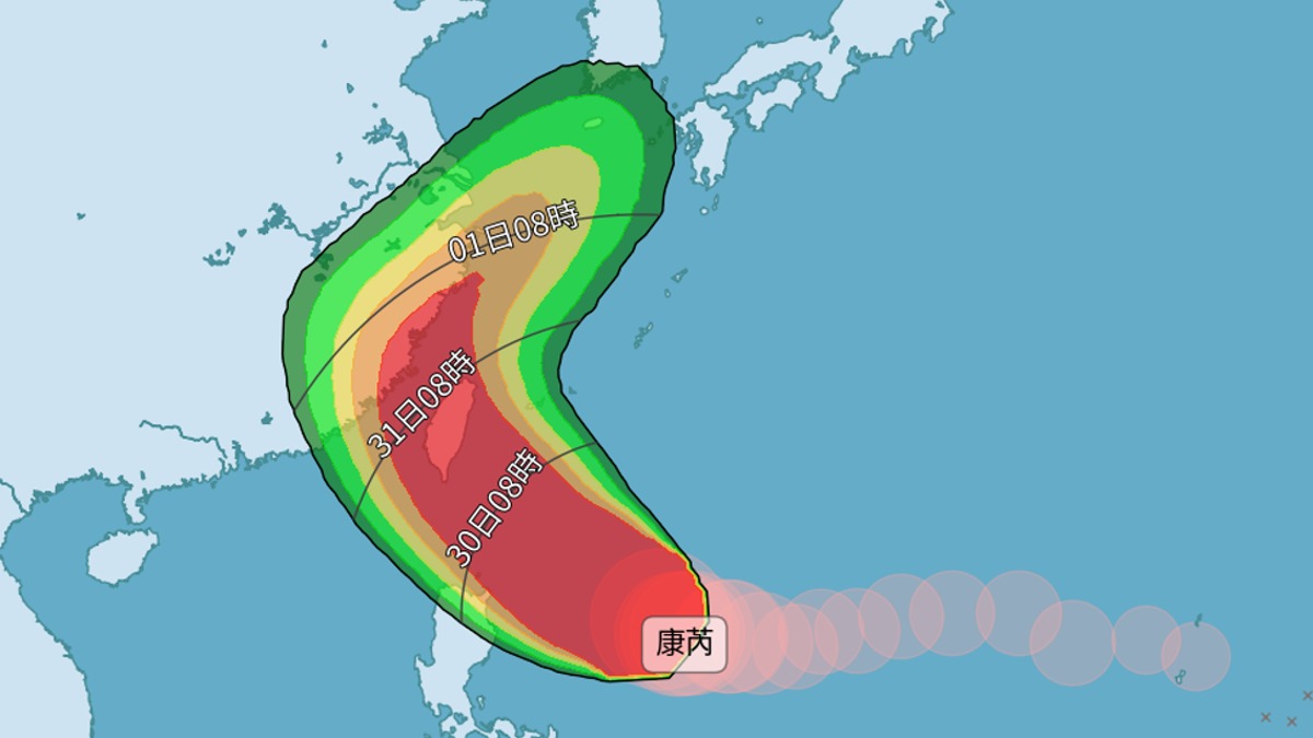 康芮颱風撲台,氣象專家預測4縣市有機會放颱風假。(圖/中央氣象署)