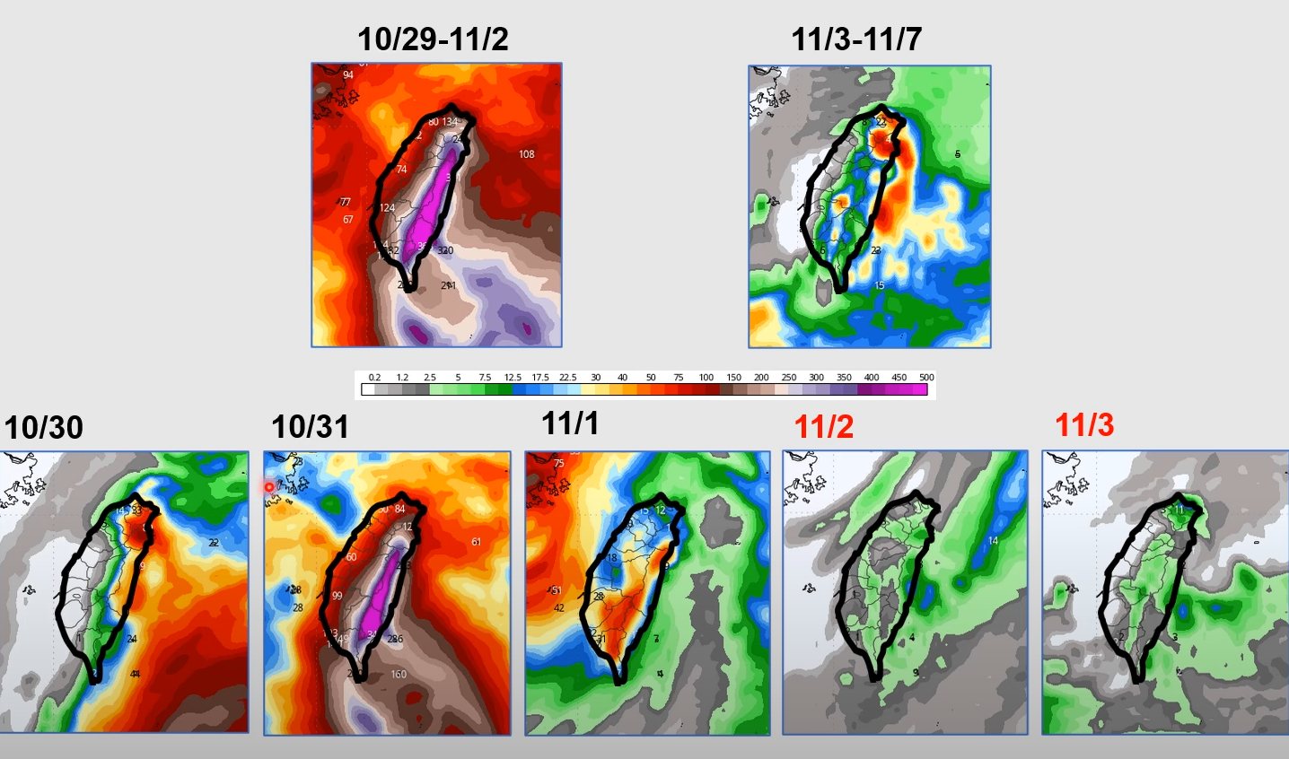 不過賈新興也提到,「好消息」是康芮颱風移動速度快,估11月1日就會離開台灣,雨勢漸停,到了周末降雨相較之下會減少。