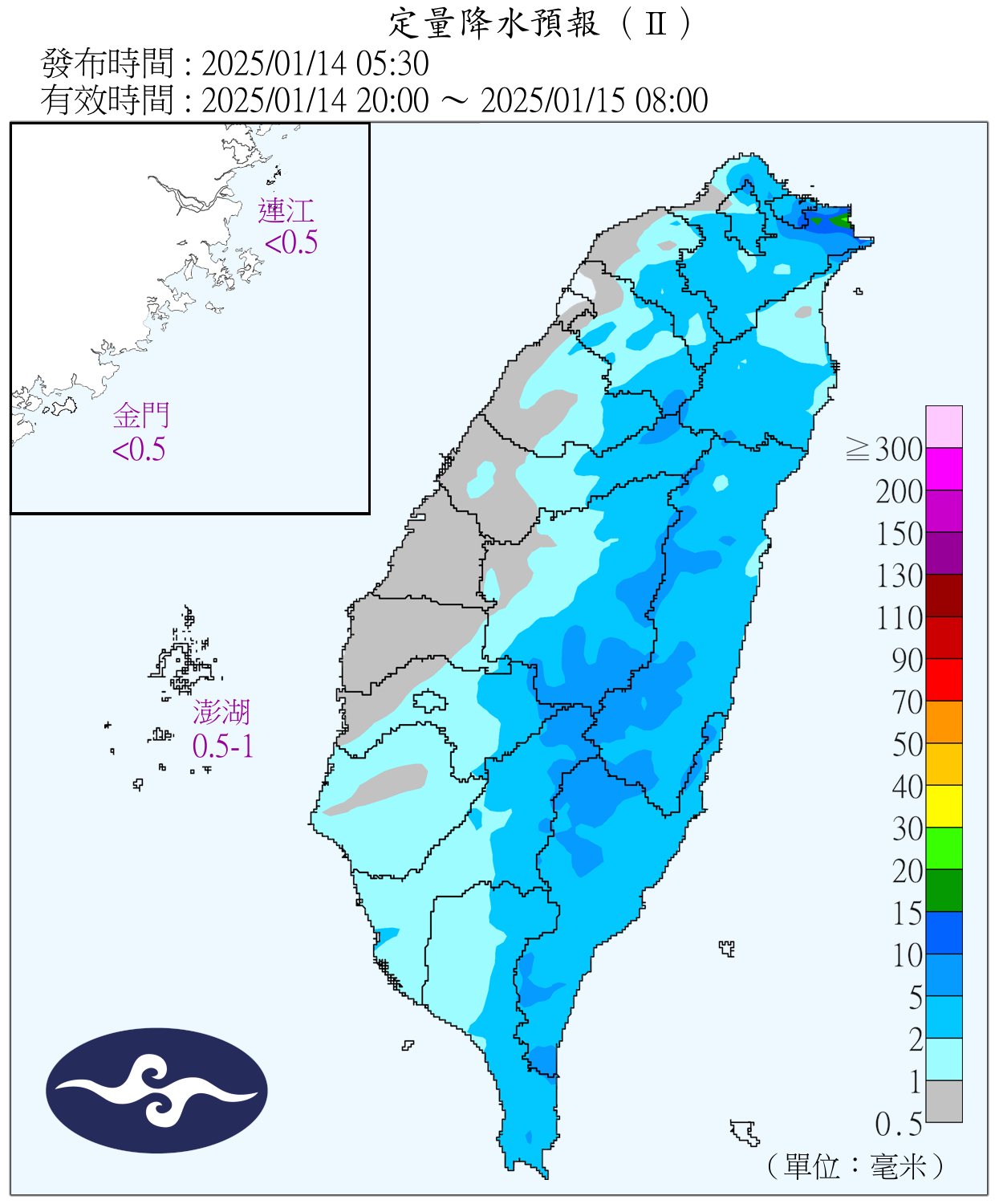 另外,林得恩初步評估溫度變化,「北部及東北部地區在攝氏12至21度,中部地區在攝氏12至24度,南部地區則在攝氏13至25度之間,花東地區可以維持在攝氏15至22度,澎湖地區在攝氏14至19度,金門地區攝氏10至18度,馬祖地區8至15度。」提醒民眾仍需留意日夜溫差大。