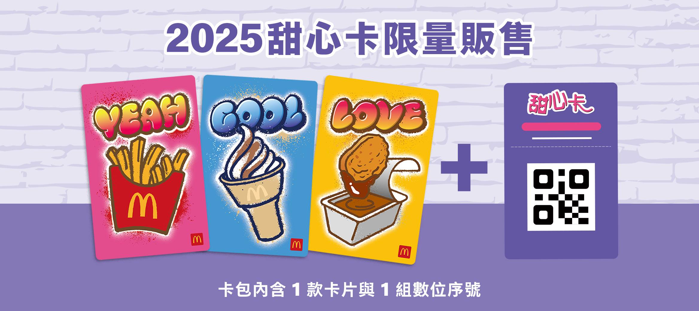 值得注意的是,2025甜心卡即日起開始販售,優惠期限至2026年3月31日止,數位綁定須以麥當勞APP會員帳號進行,方可使用麥當勞APP兌換甜心卡優惠,序號綁定期限同優惠使用期限,且卡包售出經拆封後恕不辦理退換貨,3種款式數量有限,售完為止,恕不指定。