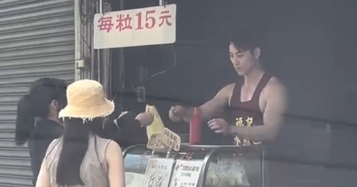 一名女網友在Threads曬出2名女客人,向猛男店員買水煎包的影片,只見超帥超壯的猛男店員,動作俐落地包裝、結帳,讓其中一名女客轉身時露出「抿嘴」表情。