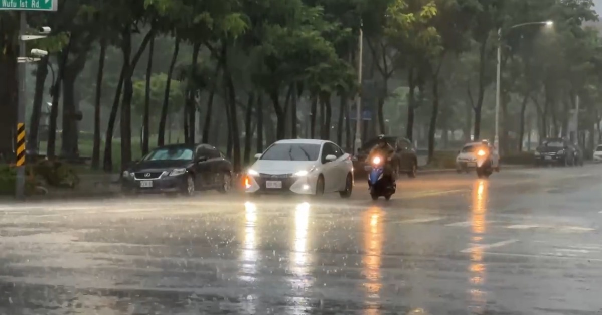 高雄、屏東多地出現積淹水,國一南下市區往小港路段有多處積淹水;屏東東港適逢漲潮,道路出現15公分高積淹水,並啟動排汛措施。