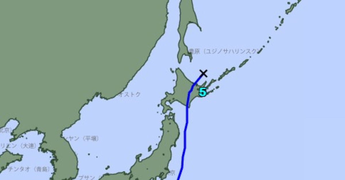 今年第5號颱風百合,凌晨在日本北海道登陸並縱貫當地。(圖/翻攝自日本氣象廳)