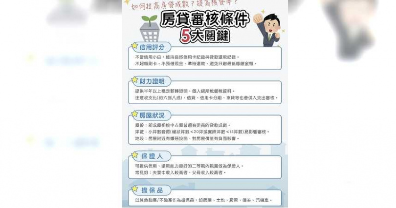 影響房貸成數與核貸率的五大關鍵條件。(圖/踏取國際開發提供)