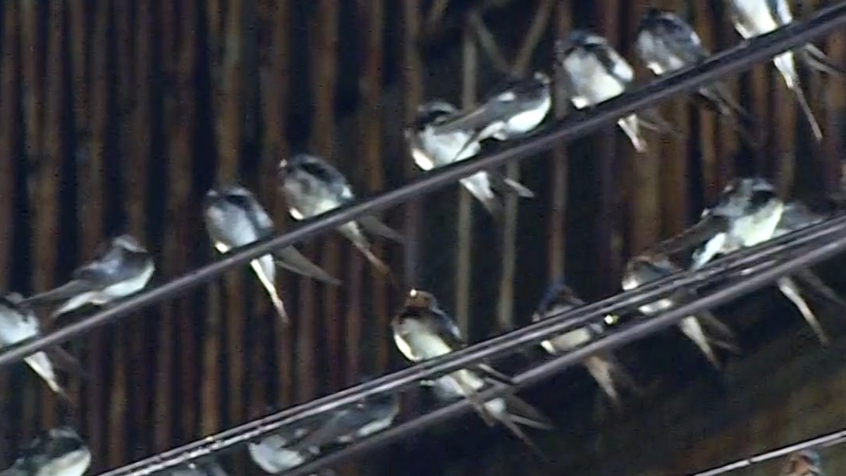 高雄大樹的九曲堂最近傍晚時段,鎮上的每根電線桿、每一條電線都被燕子占得滿滿滿,附近民眾說,以前就有類似狀況,但像今年這麼驚人的數量還是頭一次見到,有時候要出門怕被排泄物滴到,還得撐傘上路,另外,鎮上還有夜市,也擔心燕子的排泄物會不會幫美食給加料?高雄市野鳥學會就說,這種家燕似乎不喜歡強光,所以不會靠近夜市,時間到了也會自行離開,民眾不需要特別驅趕。