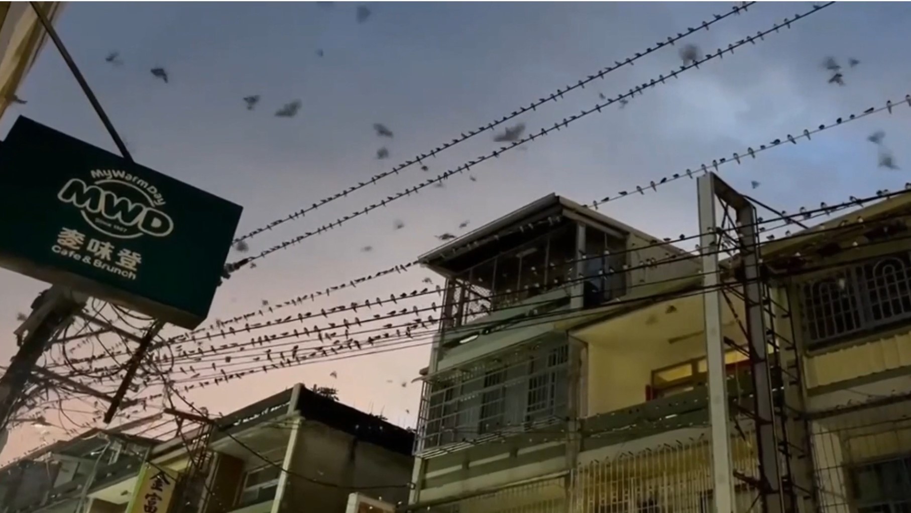 高雄大樹的九曲堂最近傍晚時段,每一條電線都被燕子占得滿滿滿。(圖/東森新聞)