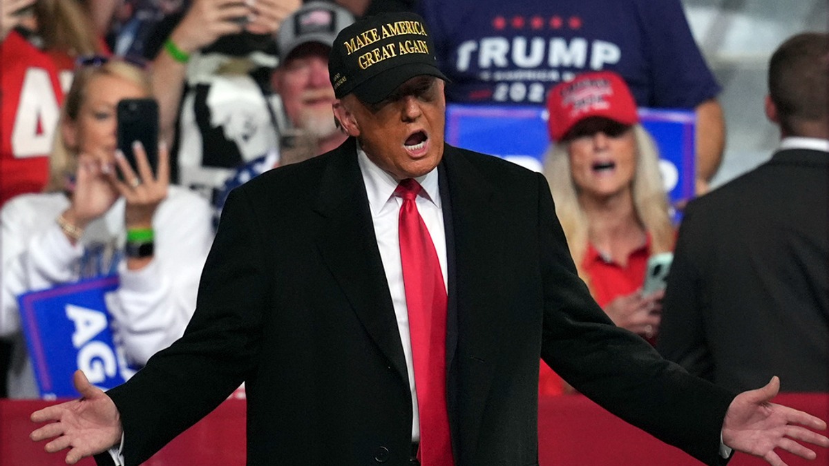 美國總統大選進入最後倒數2天,川普在造勢活動大玩遭到槍擊的「地獄哏」。(圖/美聯社)