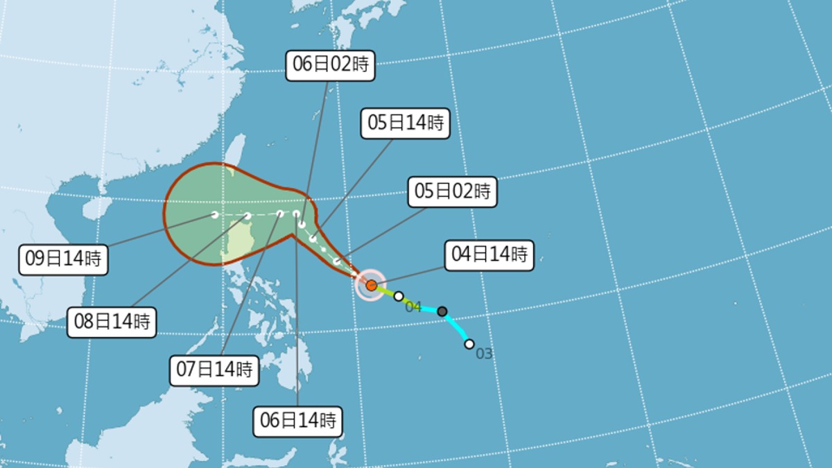 銀杏颱風估轉中颱。(圖/中央氣象署)