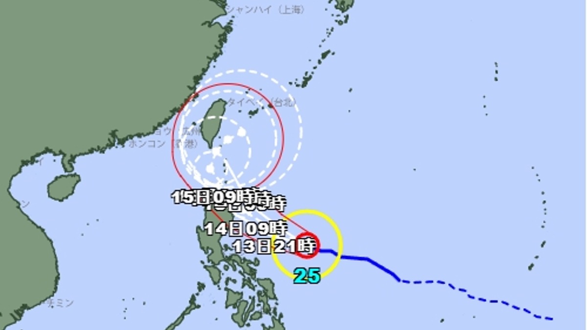 天兔颱風最快恐在今(13)日轉為中度颱風,日本氣象廳已按照日本分類將天兔定義為強颱,預估後續路徑將接近蘭嶼、綠島後,再往東轉。