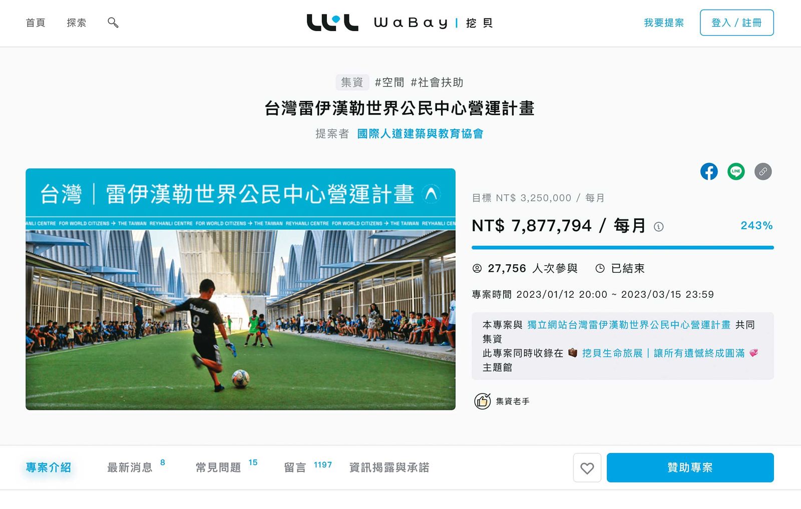 土耳其台灣中心去年在貝殼放大所屬挖貝平台發起募資計畫,2個月募得約8千萬元,近2.8萬人響應。(圖/翻攝挖貝募資平台官網)