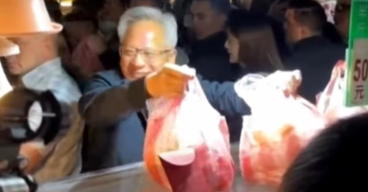 通化夜市內,小小水果攤被滿滿人潮擠到水洩不通,想往前移動卻是再怎麼說借過也沒用,因為所有人舉起手機,搶拍的正是。輝達執行長黃仁勳:「你們怎麼知道我會來夜市。」