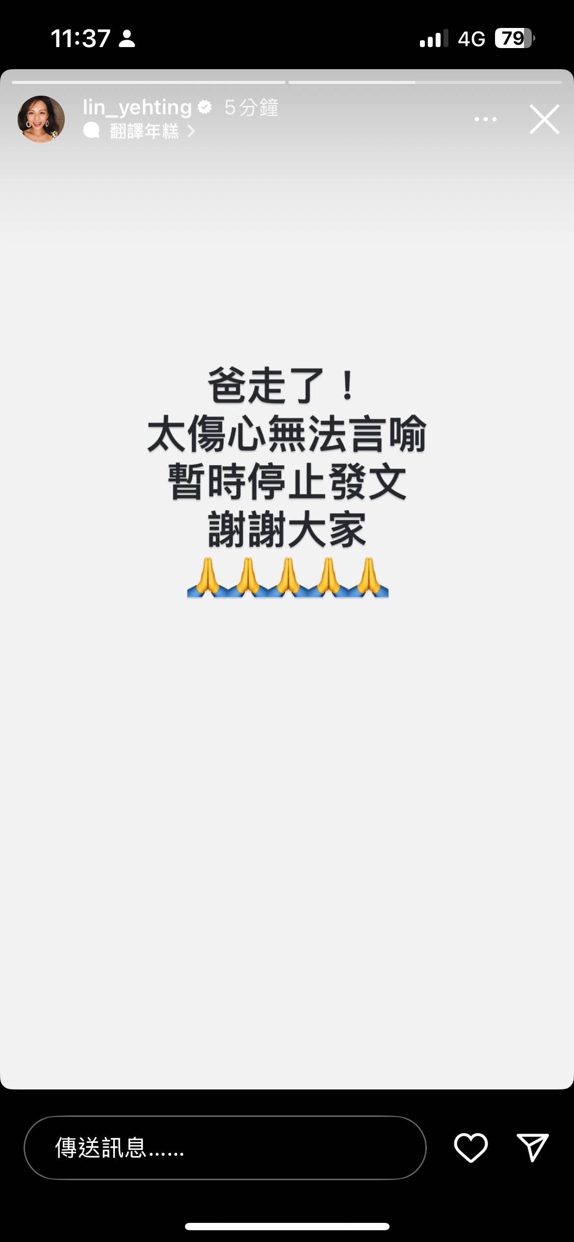 林葉亭抵達現場認屍,證實是林爸爸,並透過IG發文。(圖/翻攝自林葉亭IG)