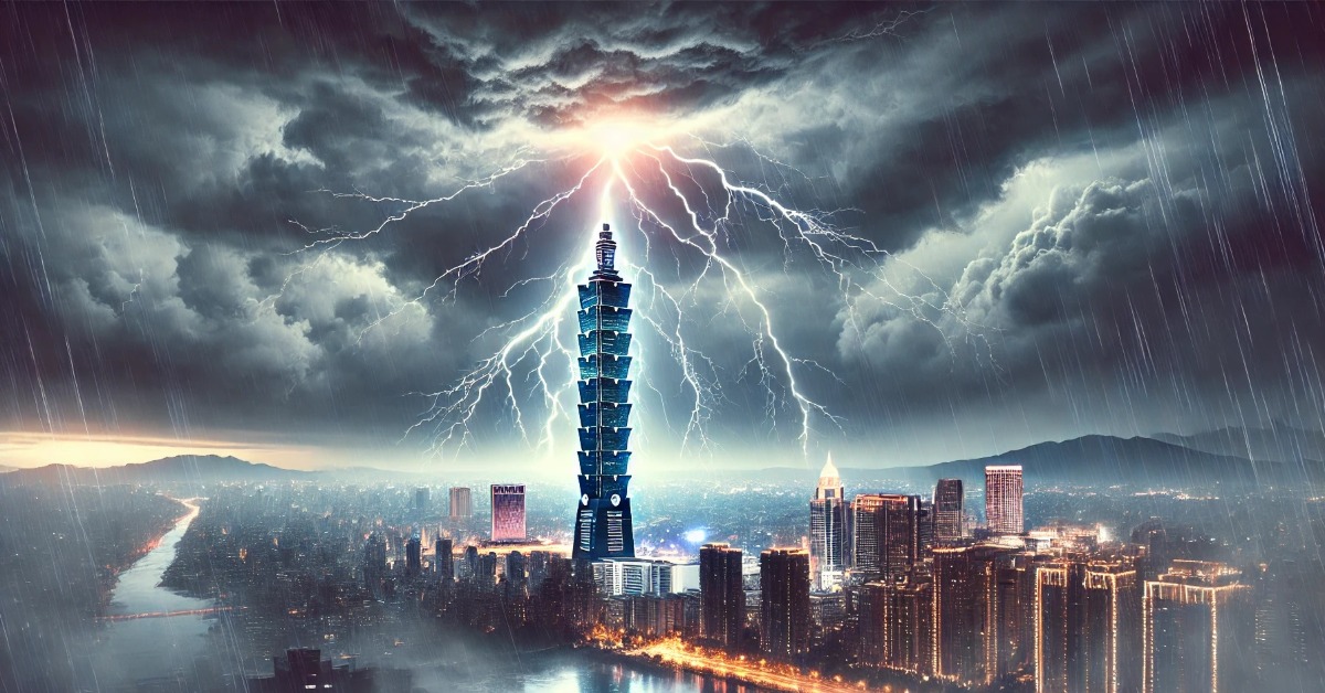台北101遭雷擊畫面。(示意圖/AI生成)