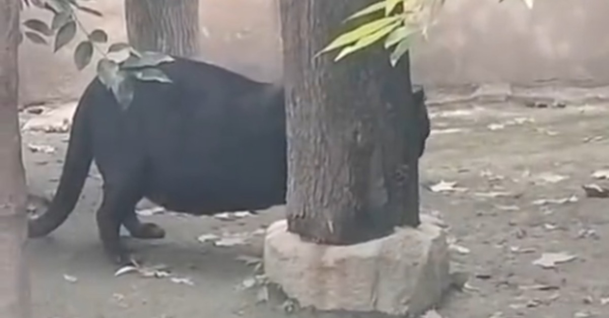 這隻胖呼呼的花豹從飼養籠中慢步走出來,連跟觀眾互動都有點無精打采,感覺就像是被迫上班,輕輕一跳,大肚腩就快要拖地了,已經胖成豬了,被笑是中年虛胖,大陸四川攀枝花動物園,被養胖的動物還不只一隻。