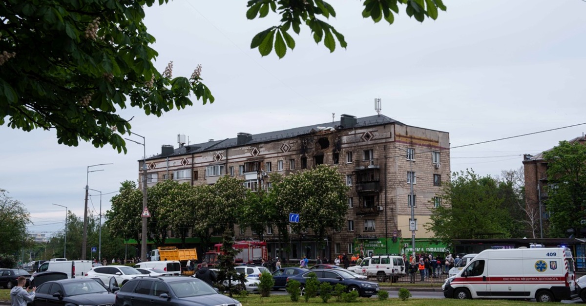 烏克蘭基輔一棟居民大樓遭到俄羅斯空襲。(圖/美聯社)