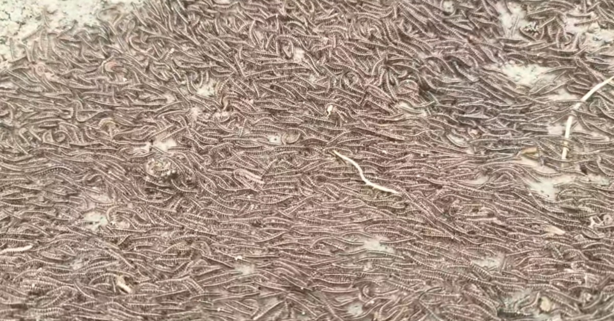 彰化一處果園出現「馬陸大軍」,上萬隻馬陸傾巢而出。(圖/翻攝自陳啟宗臉書)