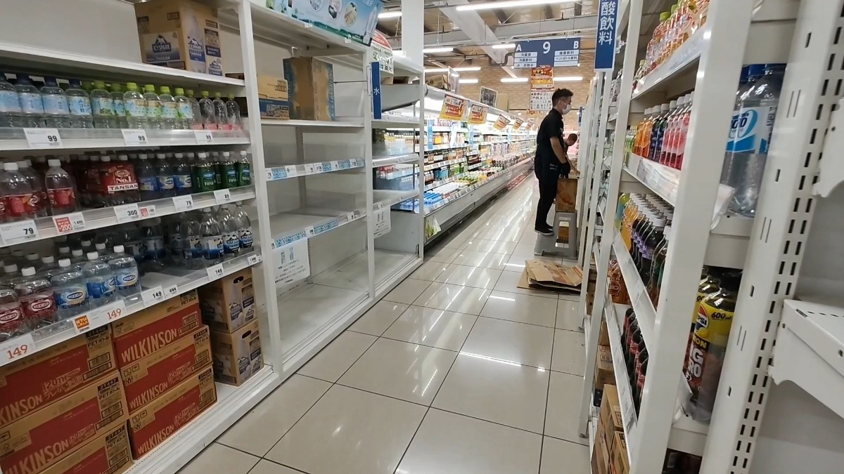 日本宮崎縣發生規模7.1強震後,日本氣象廳再發布「巨大地震預警」,呼籲民眾做好防震準備,而今(9日)中午左右,北海道發生規模6.8地震,最大震度3級,許多民眾擔心又有強震,東森新聞就獨家直擊到,日本人紛紛到超市搶購防災物資,連瓶裝水都被掃空,部分超市只好祭出「限購令」,一個家庭最多只能買一箱,避免民眾狂囤物資。