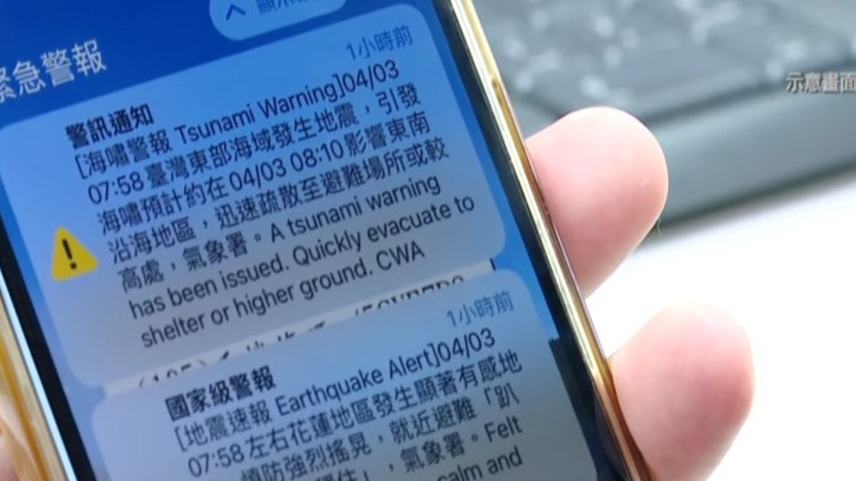 氣象署將藉由手機即時發送警報簡訊給民眾,這次演練包含地震、海嘯兩大情境。