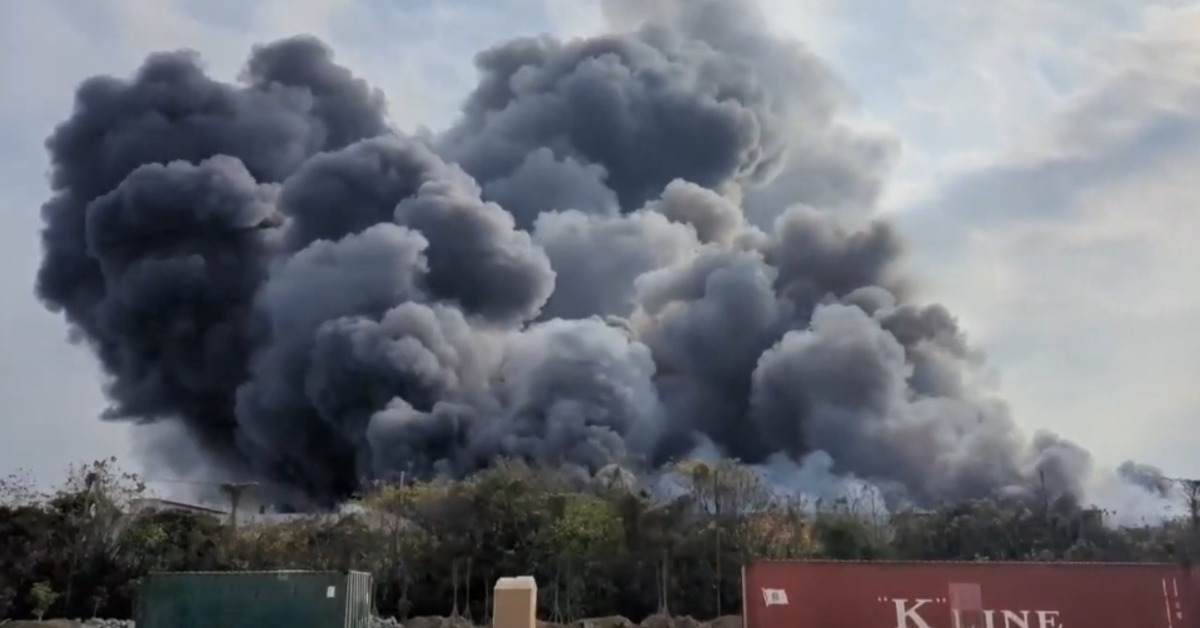 台南柳營工業區一間綠能科技公司,今(11)日下午發生大火,由於悶燒導致濃煙非常龐大、狂竄天際,警消正在全力灌救中。