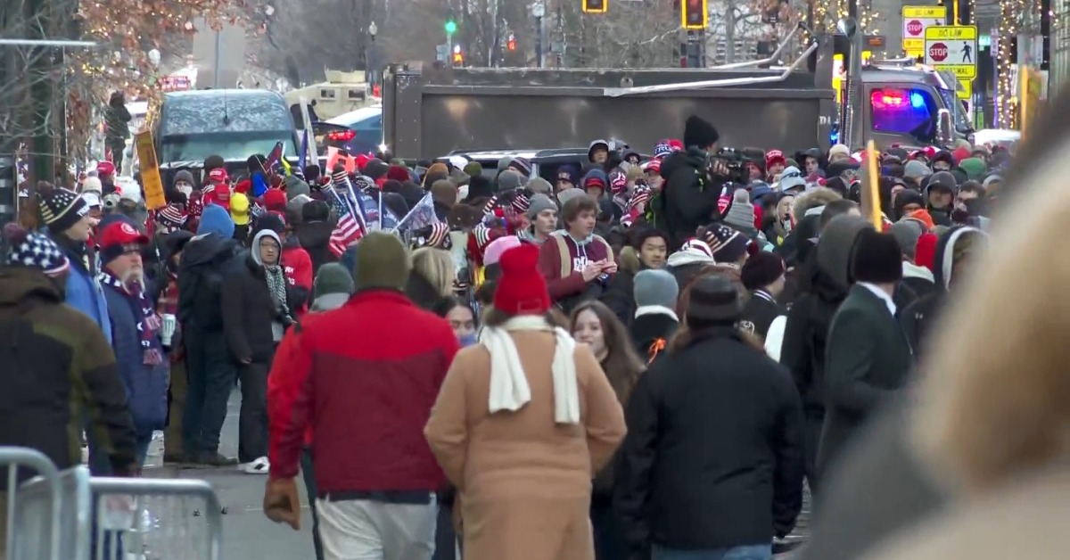 川普就職當天,雖然賓州大道遊行取消改成室內見面會,還是有許多民眾不畏零下15度體感低溫,聚集在賓州大道兩旁等待,希望能夠親眼目睹川普車隊經過。