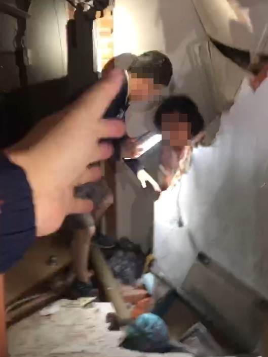 嘉義發生規模6.4地震,台南市楠西區民族路平房倒塌3人受困,經警消搶救目前民眾已救出,現場畫面也曝光。(圖/東森新聞)