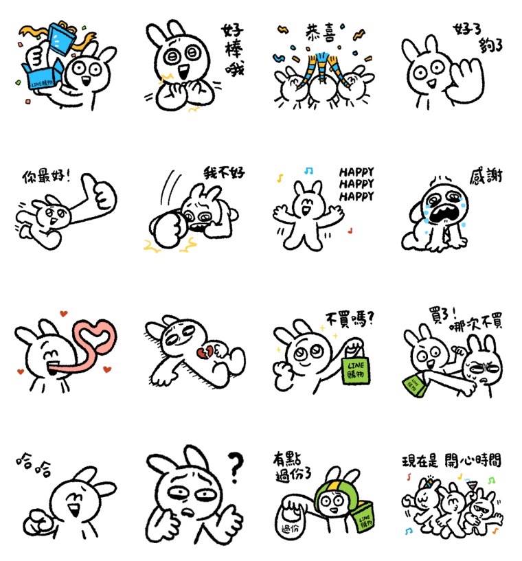 LINE與兔子波波聯名免費貼圖。(圖/翻攝自LINE貼圖)