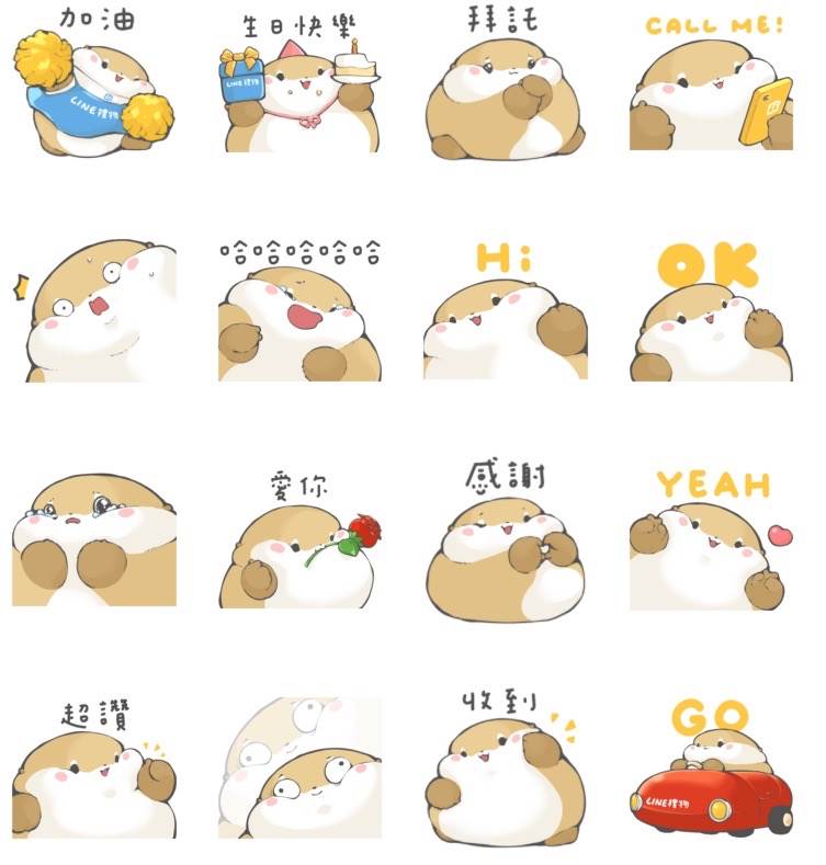 LINE與肥嫩水獺聯名免費貼圖。(圖/翻攝自LINE貼圖)