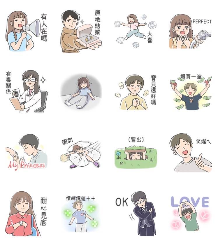PROMESSA與廢物女友聯名免費貼圖。(圖/翻攝自LINE貼圖)