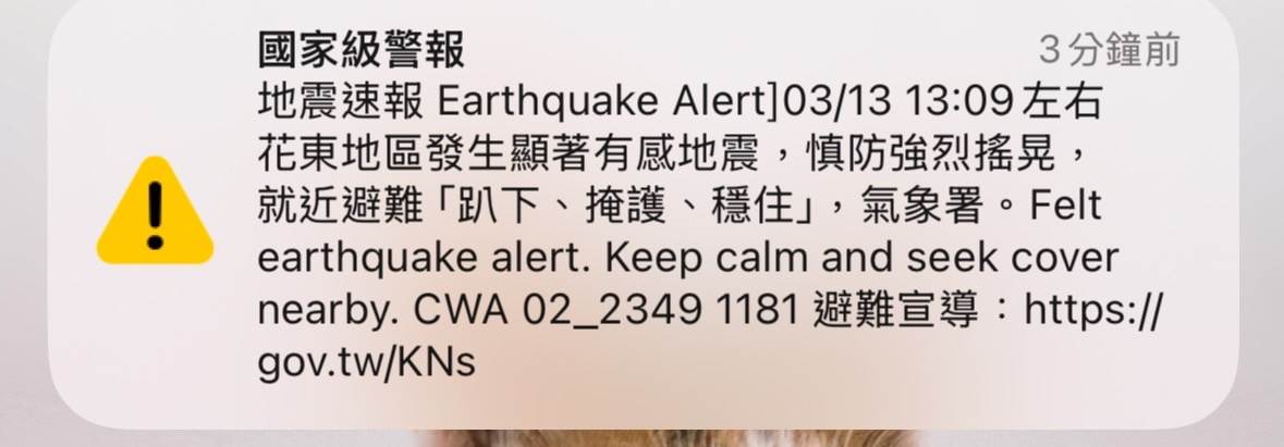 中央氣象署今(13)日13時09分左右發布地震報告,花東地區發生有感地震,芮氏規模5.7,最大震度4級地區:台東縣、花蓮縣。