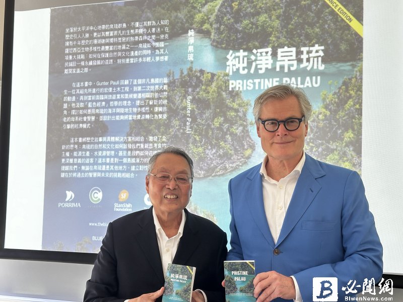 施振榮15日與保利馬共同 創辦人Gunter Pauli 在《純淨帛琉》新書發表會中,特別針對台帛榮邦計畫的 具體合作項目做進一步說明。