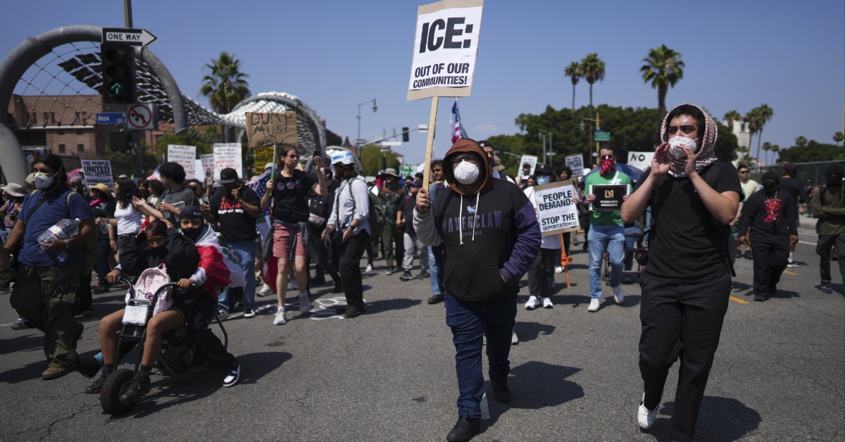 洛杉磯示威民眾聚集在洛杉磯市中心。(圖/美聯社)