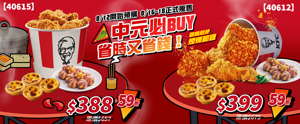 除了麥當勞以外,肯德基推出「中元節特別優惠」,輸入優惠碼則可享59折優惠桶餐。