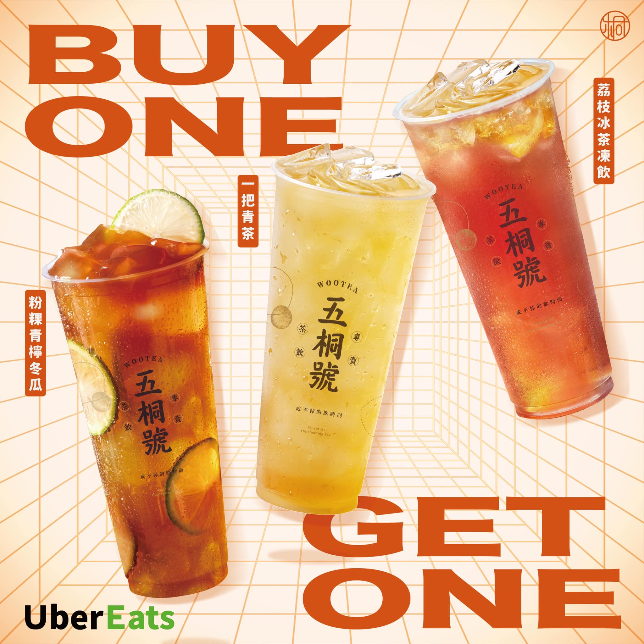 同樣慶祝中秋,五桐號於9/11-9/24在外送平台UberEats推出限定優惠,3品項「一把青」、「荔枝冰茶」、「粉粿青檸冬瓜」享買1送1,飲品加料不包含於買一送一優惠中。