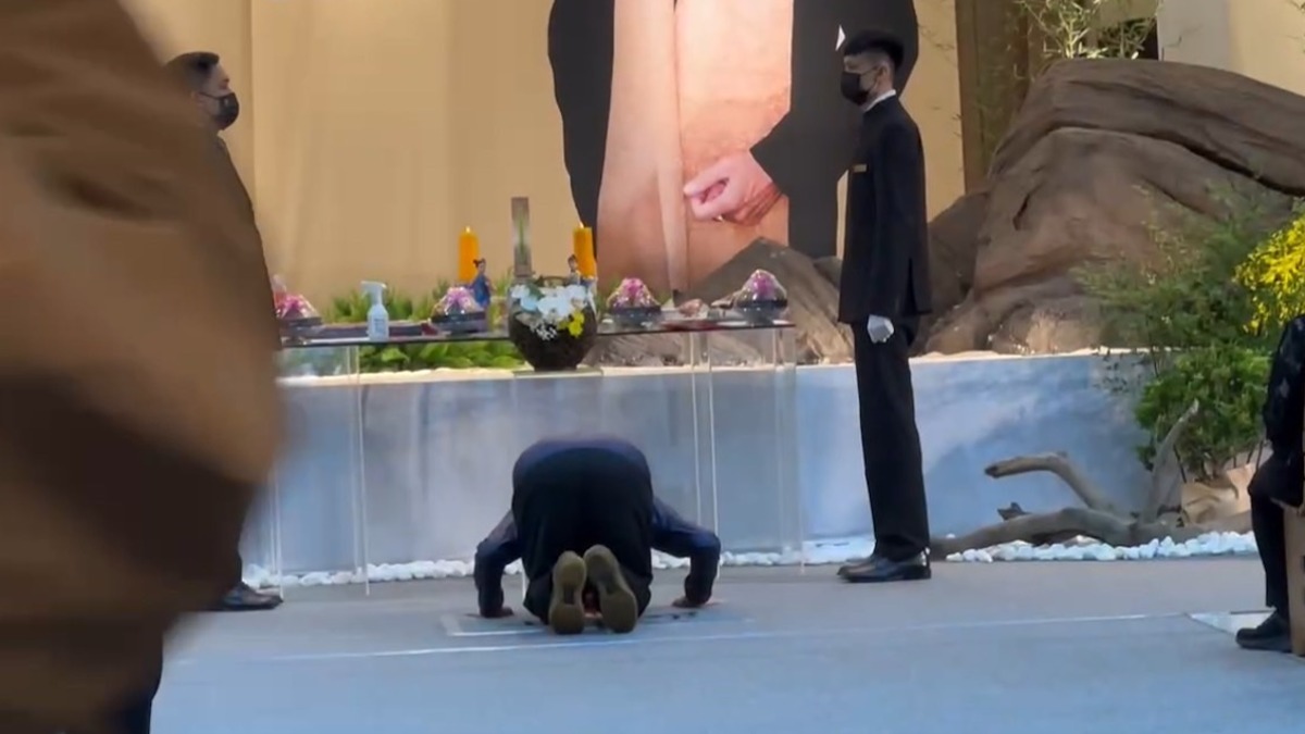 澎恰恰低調現身!跪下告別師父石英 不受訪離開